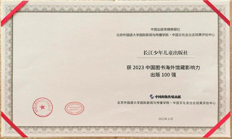 長少社連續(xù)8年入選“中國圖書海外館藏影響力100強(qiáng)”