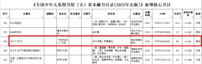 《長(zhǎng)江!長(zhǎng)江!》入選全國(guó)少年兒童圖書館(室)基本藏書目錄