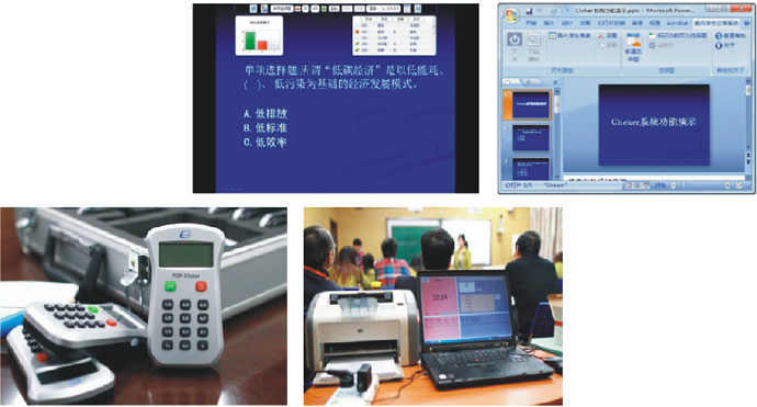 使用Clicker學(xué)生應(yīng)答系統(tǒng)(專利號:ZL201020646811 6),教師設(shè)計互動應(yīng)答問題,讓學(xué)生在規(guī)定的時間內(nèi)Clicker將答案提交到教師的計算機(jī)中,計算機(jī)收集到所有的反饋信息后,將對反饋信息進(jìn)行統(tǒng)計分
