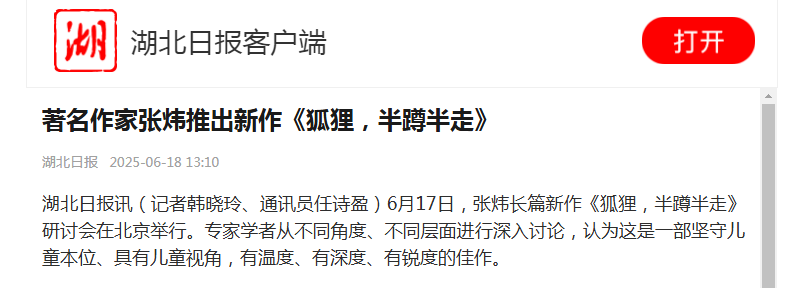 湖北日報客戶端 |著名作家張煒推出新作《狐貍,半蹲半走》