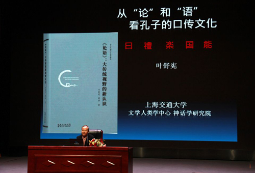本次專題講座正是以《〈論語〉:大傳統(tǒng)視野的新認識》的出版為契機,圍繞該書的核心內(nèi)容,以“論”“語”“學”“習”“聖”等幾個繁體字概念的深入辨析為例,結(jié)合“曰、禮、樂、國、能(熊)”幾個漢字背后所蘊藏的大傳統(tǒng)口傳文化生成語境,從知識考古的意義上闡明口傳文化特色,重估被西學東漸以來的現(xiàn)代教育誤判為“散文”的《論語》之由來真相。葉先生在講座中提出,《論語》不是孔圣人筆錄的所謂“散文”,而是全面保留口傳文化即大傳統(tǒng)價值觀的話語標本。口傳文化的價值觀與書寫文化根本不同,不以白紙黑字為可信的觀念,只有以“子曰詩云”為標志的口語表達觀念,同時高度推崇禮儀與音樂這兩種傳播媒介的至關(guān)重要作用。整場講座的核心意在找回被書寫文字篩掉的歷史,為當下重啟傳統(tǒng)文化自覺提供大傳統(tǒng)和大歷史的理論視野,為重新體認本土文化真相帶來一種閱讀新風尚。