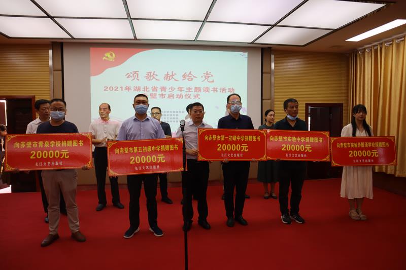 啟動儀式上,長江文藝出版社向赤壁市第一初級中學、赤壁市實驗中學、赤壁市第五初級中學、赤壁市實驗外國語學校、赤壁市青泉學校捐贈價值10萬元的圖書。