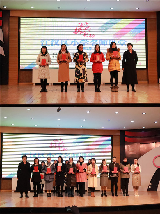 江漢區(qū)首屆“誦讀名師”表彰及展示環(huán)節(jié)過后,湖北長江報刊傳媒集團副總經(jīng)理黃燕為江漢區(qū)小學(xué)名師講堂第四講主講人薛瑞萍和李麗老師頒發(fā)了授課證書。