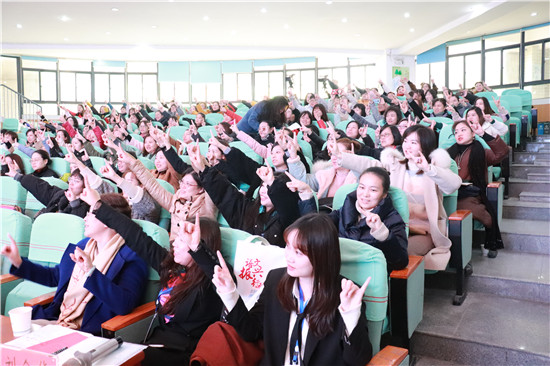 第四講活動更是為在場的江漢小語人提供了一場值得慢慢咀嚼,細細品嘗,好好回味的經(jīng)典大餐。首先,來自合肥市的吟誦教學(xué)課程導(dǎo)師李麗為大家展示了一節(jié)四年級的經(jīng)典誦讀課。李麗老師以詩歌為載體,帶領(lǐng)孩子們以一種別開生面、喜聞樂見的形式誦讀了三首風(fēng)格迥異的詩歌,孩子們讀在其中,樂在其中;在場的語文老師們學(xué)在其中,悟在其中。隨后登場的全國語文教學(xué)名師薛瑞萍則成為會場上的一道閃亮的光,照亮了在座所有老師的心田。薛瑞萍老師的一場長達三個多小時的專題報告直擊人心,發(fā)人深省,令與會者心發(fā)感動,醍醐灌頂。她用生動、詼諧的語言,豐富、優(yōu)雅的體態(tài)為大家詮釋了誦讀的三個要素:形象、韻律、反復(fù)。在座的所有語文老師的學(xué)習(xí)熱情被這位活力四射的“最燃教師”所點燃,情不自禁地跟著薛瑞萍老師一起律動節(jié)奏,賞讀詩歌,品味經(jīng)典,整個會場彌漫著經(jīng)典的味道,流淌著智慧的氣息,充盈著其樂融融的研究氛圍。經(jīng)典的魅力讓大家學(xué)習(xí)著,快樂著,思考著。薛瑞萍老師對學(xué)生的熱愛,對教育的執(zhí)著,對經(jīng)典的熱情,深深地感染了在場的每一位教師。