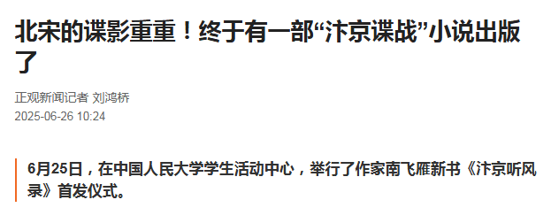 正觀新聞|北宋的諜影重重!終于有一部“汴京諜戰(zhàn)”小說出版了