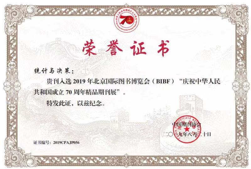《統(tǒng)計與決策》入選“慶祝中華人民共和國成立70周年精品期刊展”