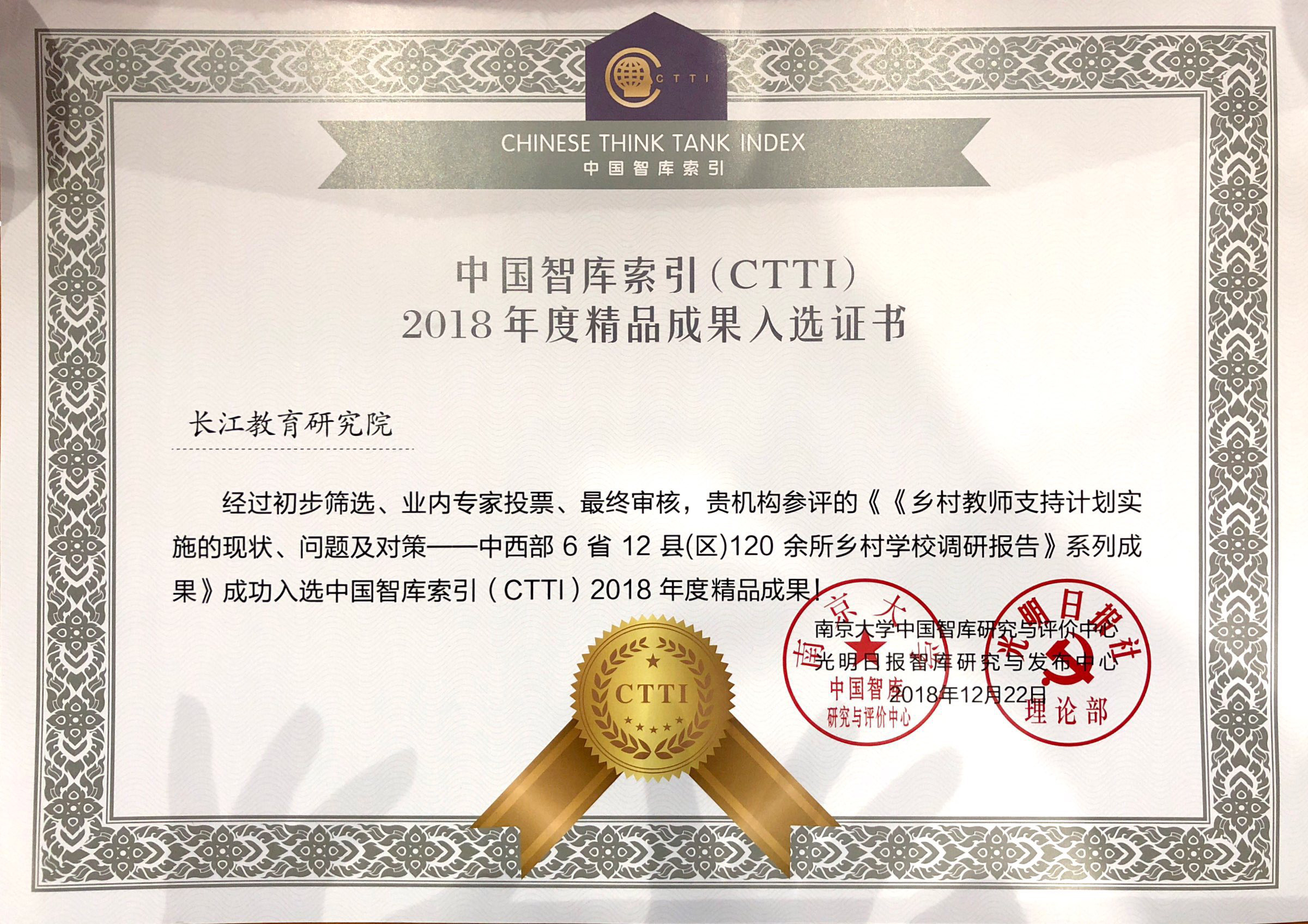 長(zhǎng)江教育研究院調(diào)研報(bào)告入選CTTI2018年度精品成果