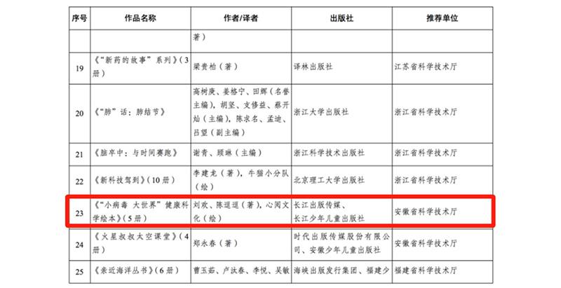 長少社《“小病毒 大世界”健康科學(xué)繪本》等4種好書入選2023年度全國優(yōu)秀科普作品名單