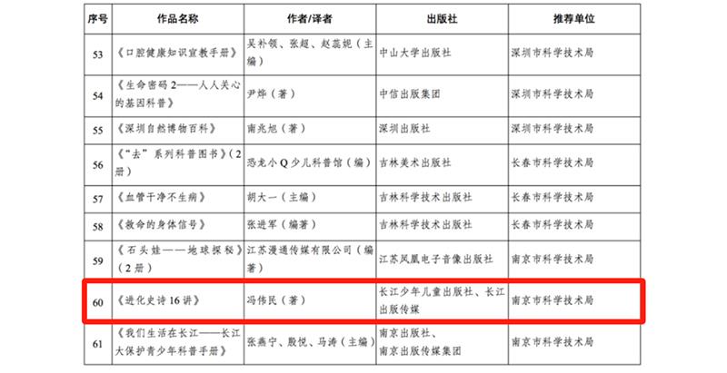 科技部日前發(fā)布了《關(guān)于公布2023年度全國優(yōu)秀科普作品名單的通知》(國科發(fā)才〔2024〕21號)。2023年度全國優(yōu)秀科普作品推薦活動,科技部共收到475部(套)作品。經(jīng)形式審查、網(wǎng)絡(luò)和會議評審并公示無異議后,共評出100部(套)作品作為2023年度全國優(yōu)秀科普作品向全社會推薦閱讀,并頒發(fā)榮譽證書。