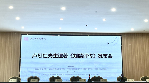 3月24日,由盧烈紅、謝艷紅著,湖北人民出版社出版的《劉賾評傳》一書發(fā)布會在武漢舉行。本次活動由武漢大學(xué)文學(xué)院、湖北師范大學(xué)文學(xué)院、中南民族大學(xué)文學(xué)與新聞傳播學(xué)院、湖北人民出版社主辦,武漢大學(xué)黃侃研究所、湖北與言語智能信息處理研究基地、武漢大學(xué)言吾學(xué)社共同承辦。出席會議的有北京大學(xué)教授孫玉文等學(xué)者、武漢大學(xué)文學(xué)院師生、盧烈紅先生親屬、師門和好友等。