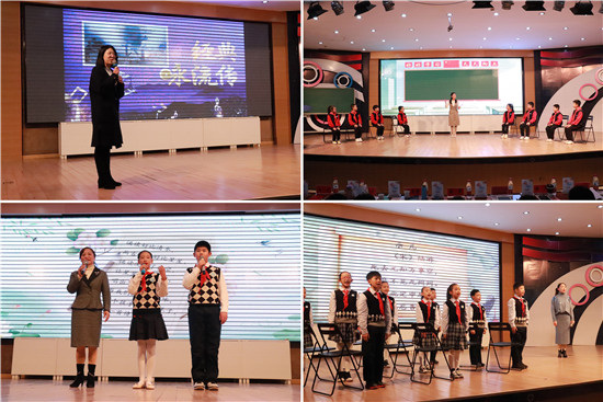 在活動現(xiàn)場,首先由武漢市江漢區(qū)小教科科長應(yīng)蘭宣讀江漢區(qū)小學(xué)首屆“誦讀名師”的表彰決定,江漢區(qū)教育局副局長張惠君分別為獲得“誦讀名師”稱號的陳靚等10名教師和獲得“誦讀名師”提名獎的吳娜等7名教師頒發(fā)榮譽證書。接著,大興實驗學(xué)區(qū)和萬松學(xué)區(qū)的四位誦讀名師——長港路小學(xué)的阮天成老師、萬松園路小學(xué)的唐雙君老師、大興第一實驗小學(xué)的肖丹老師,黃陂街小學(xué)的童琦老師華麗登場,從不同的側(cè)面展示了四位名師的誦讀功力與魅力。